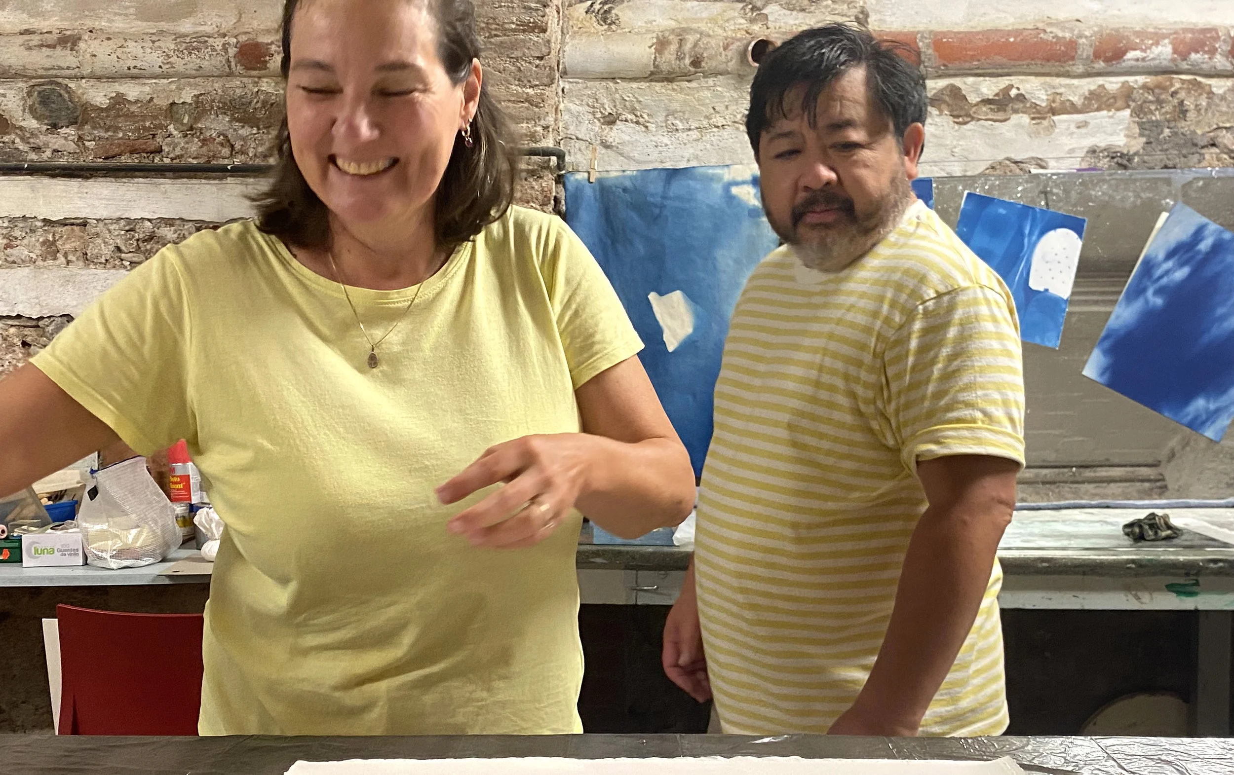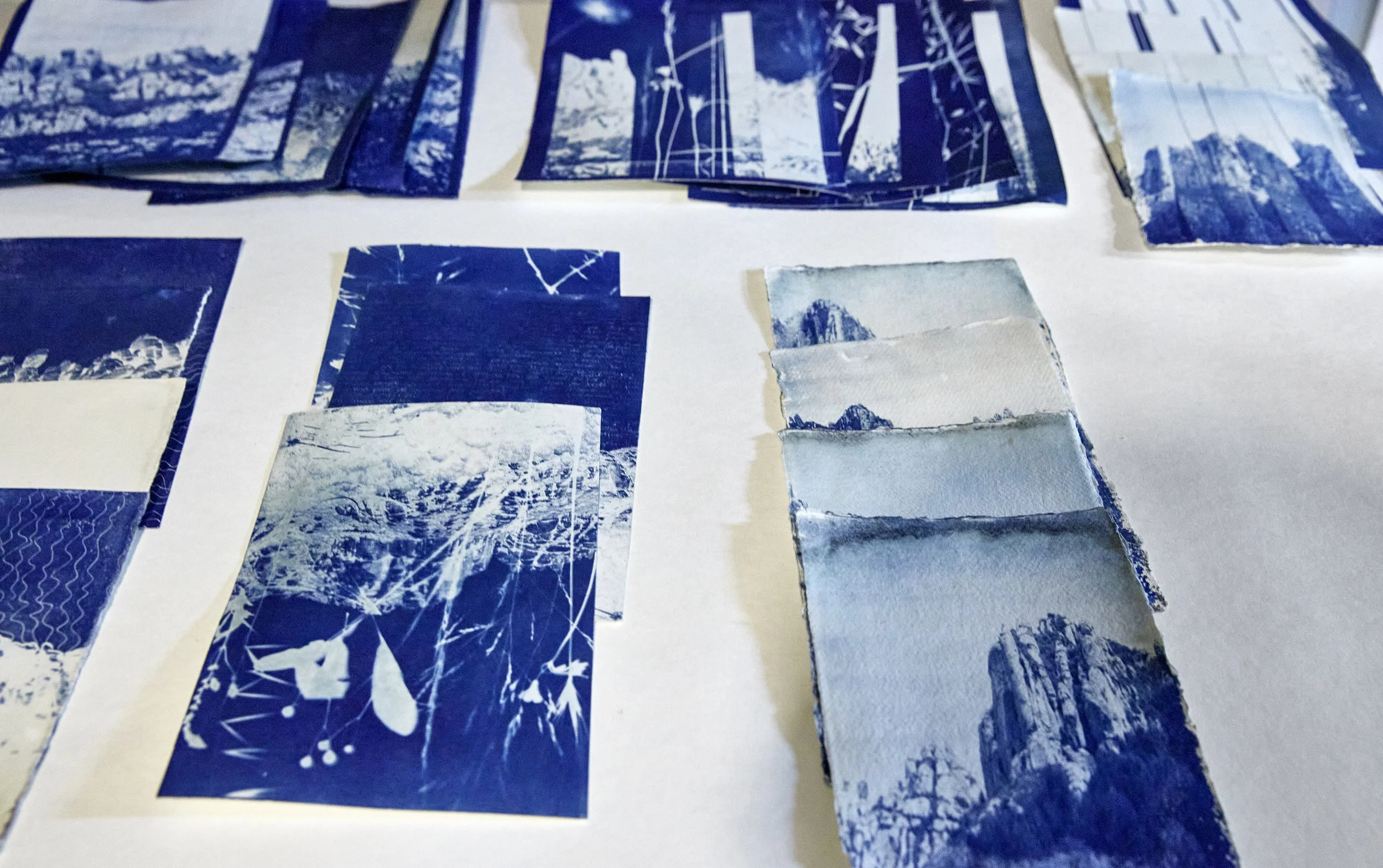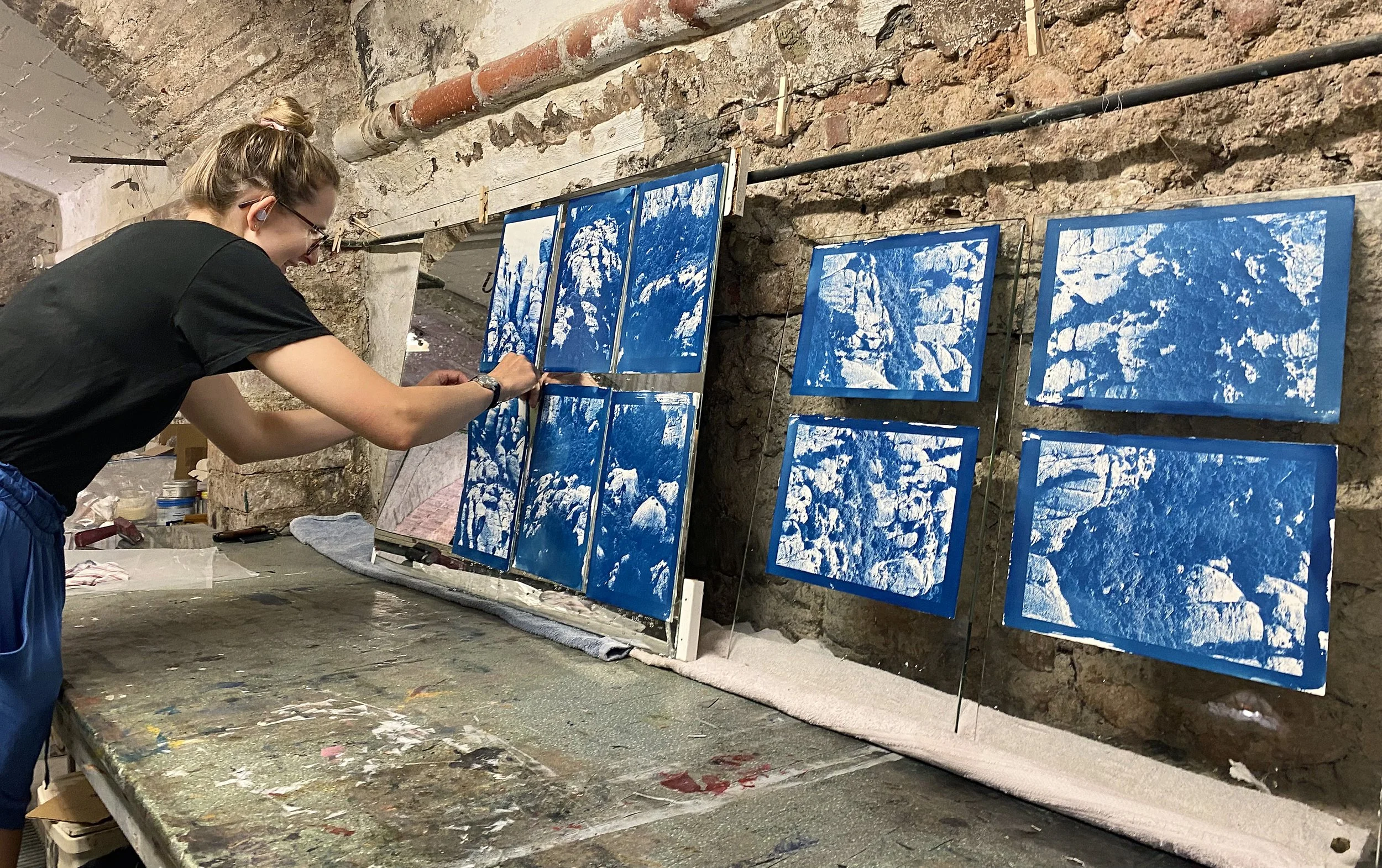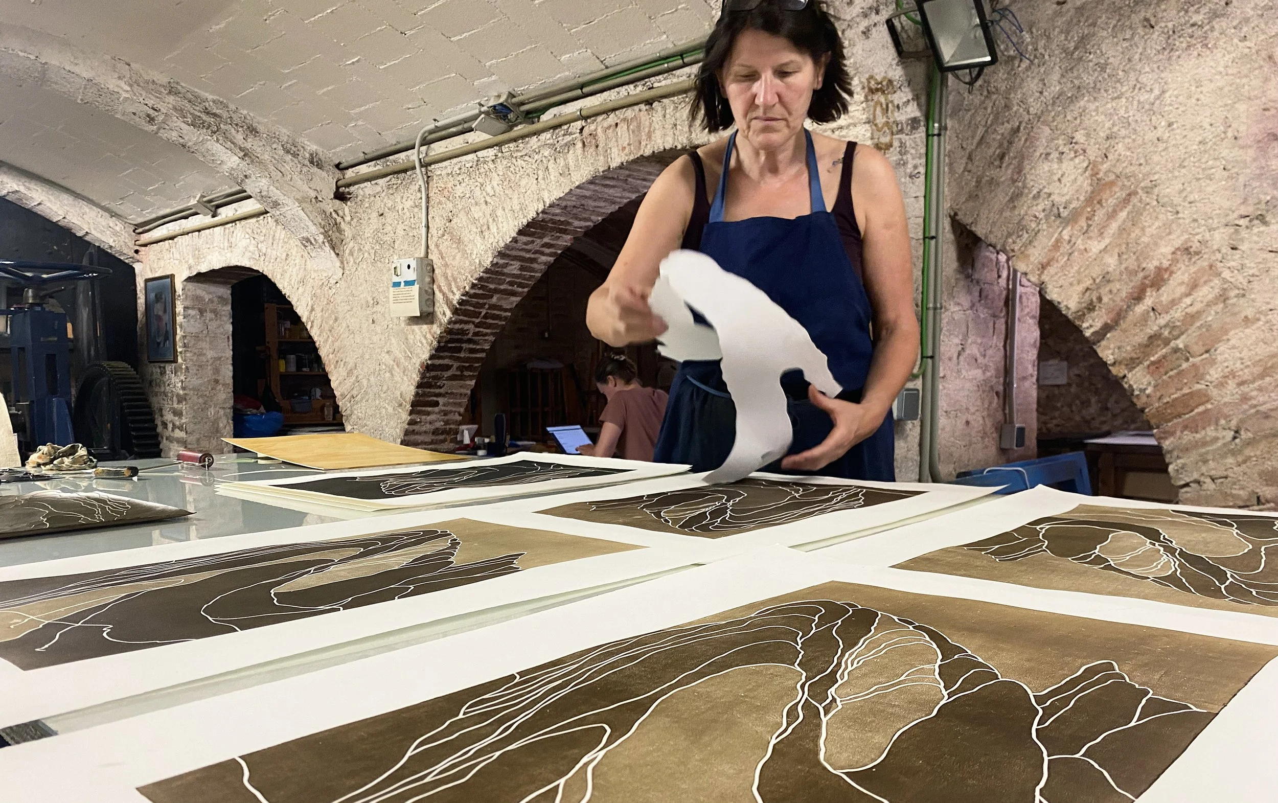 An experiment in site-specific print- and event-creation in an idyllic countryside retreat at the Can Serrat Studio near Barcelona, Spain. Artists work in intaglio, relief and cyanotype techniques from July 5 to 16, 2023. The artists chose the title Hidden as a starting point for making their artworks.